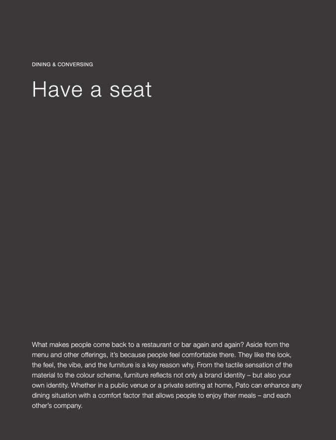 own identity. Whether in a public venue or a private setting at home, Pato can enhance any