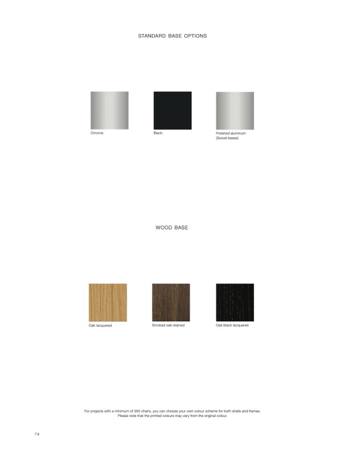 For projects with a minimum of 300 chairs, you can choose your own colour scheme for both shells and frames.