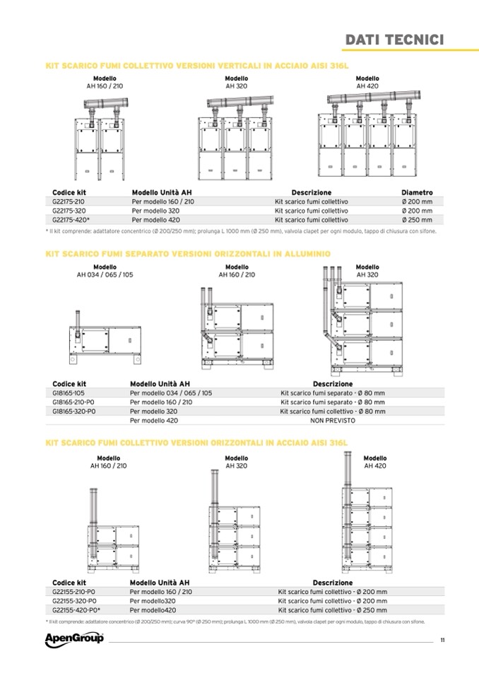 KIT SCARICO FUMI COLLETTIVO VERSIONI VERTICALI IN ACCIAIO AISI 316L