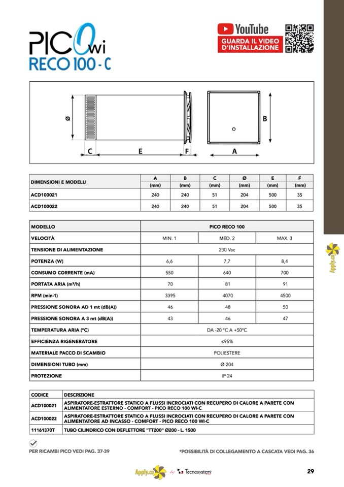 ASPIRATORE-ESTRATTORE STATICO A FLUSSI INCROCIATI CON RECUPERO DI CALORE A PARETE CON