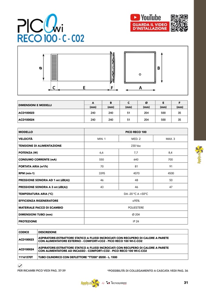 CON ALIMENTATORE AD INCASSO - COMFORT+CO2 - PICO RECO 100 WI-C-CO2