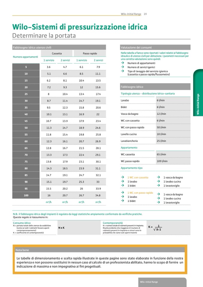 N.B.: il fabbisogno idrico degli impianti è regolato da leggi statistiche ampiamente confermate da verifiche pratiche.