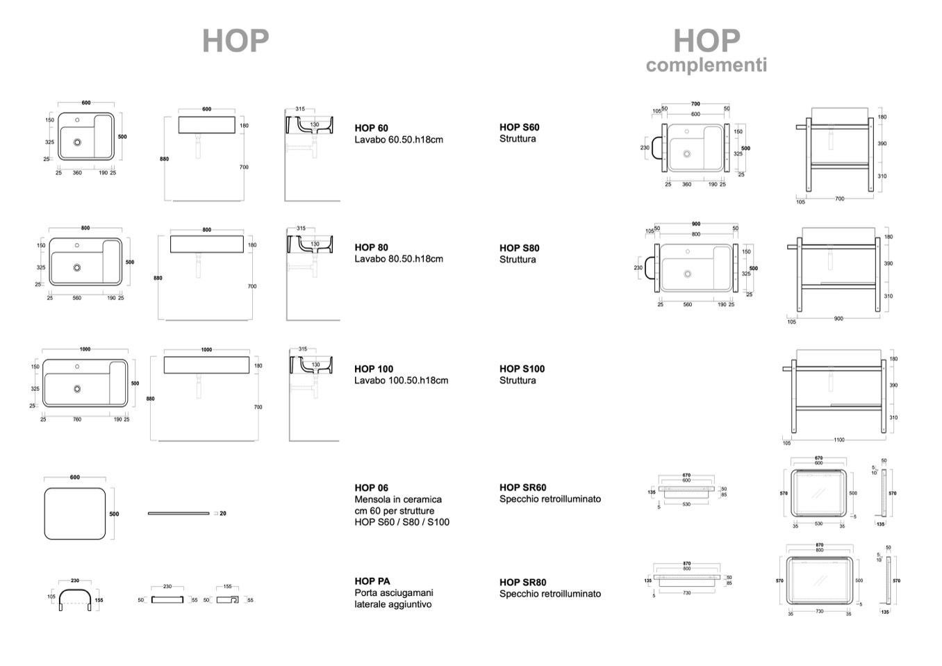 Struttura in metallo cm 110 per consolle HOP 60 completa di portasciugamani HOP PA