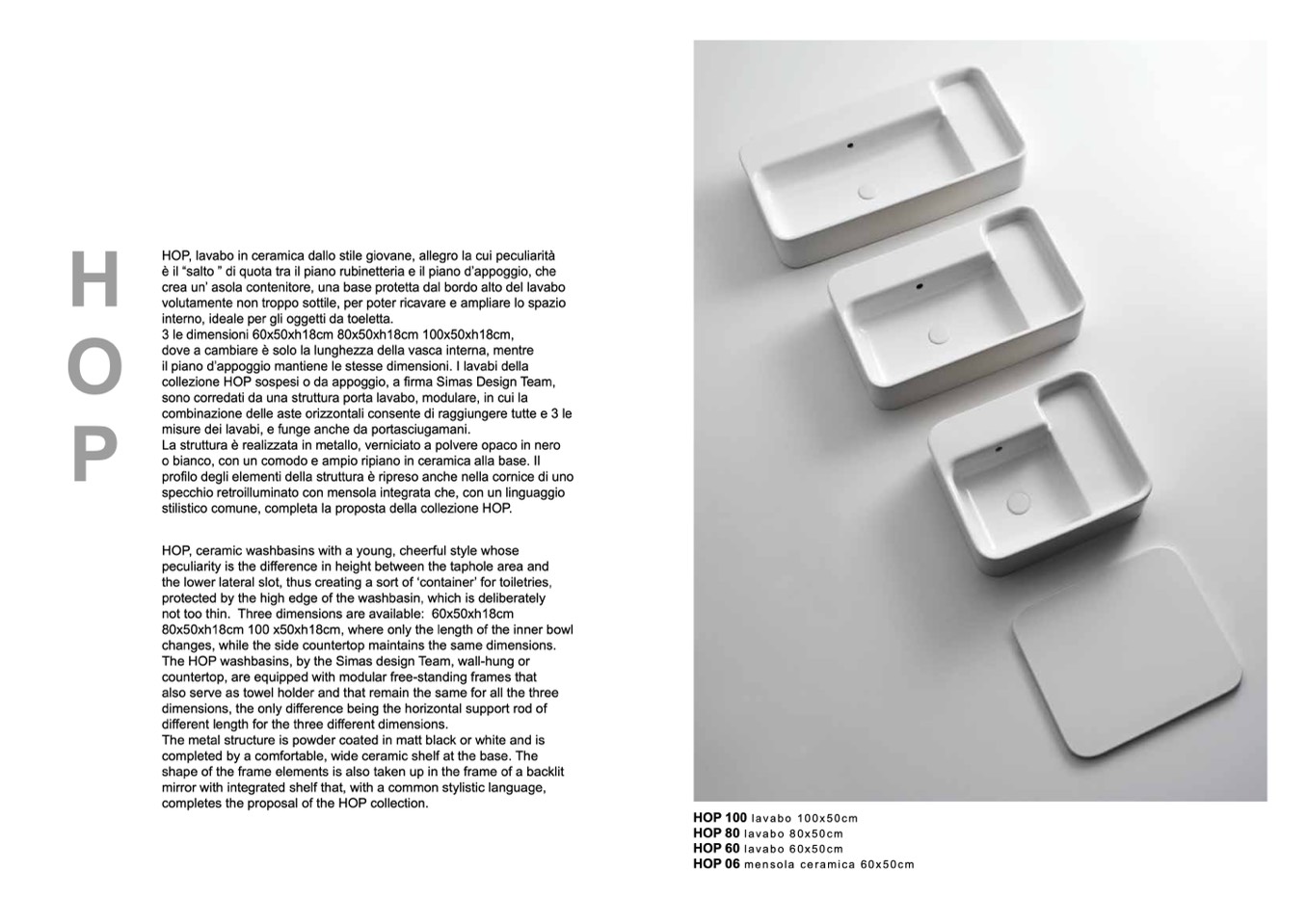 The HOP washbasins, by the Simas design Team, wall-hung or