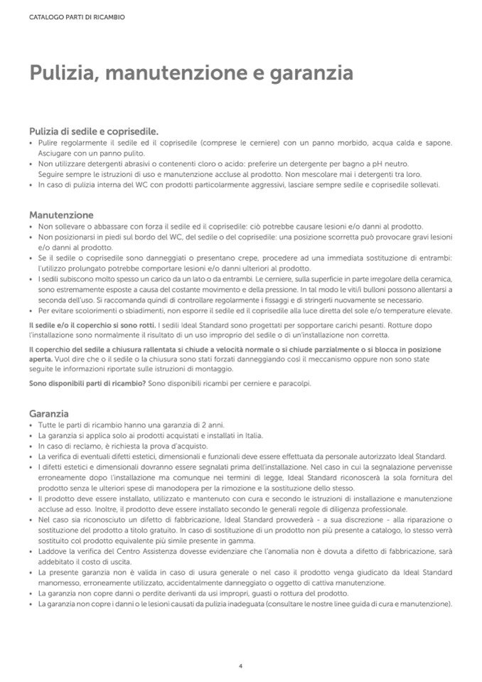 • La presente garanzia non è valida in caso di usura generale o nel caso il prodotto venga giudicato da Ideal Standard