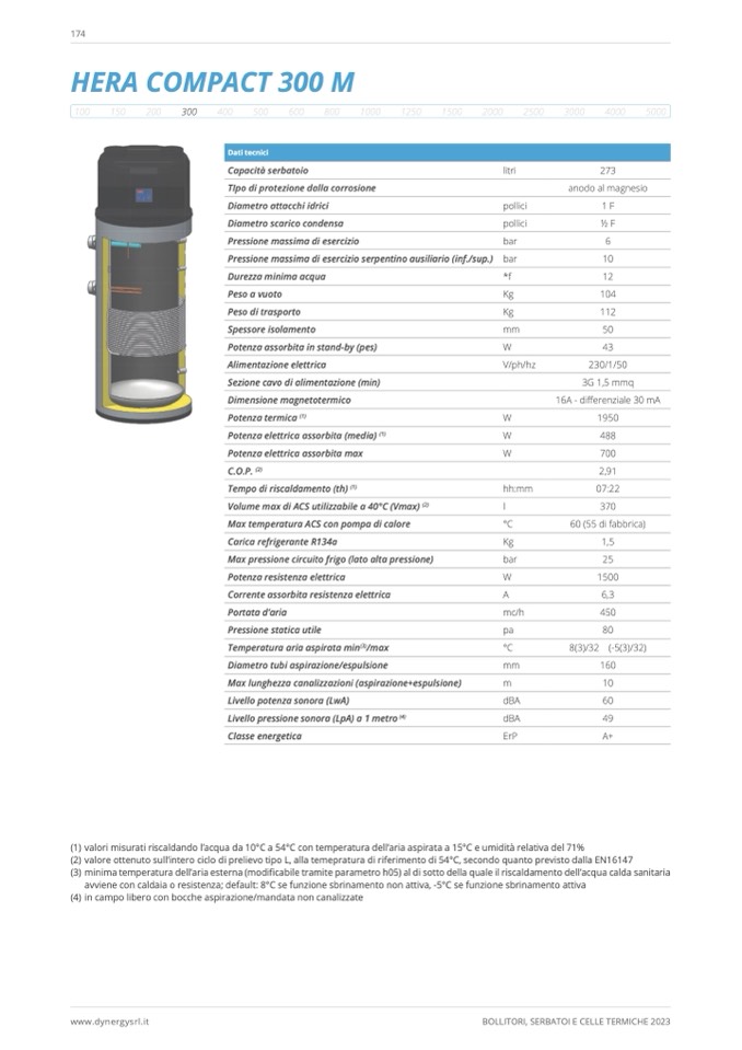 (1) valori misurati riscaldando l’acqua da 10°C a 54°C con temperatura dell’aria aspirata a 15°C e umidità relativa del 71%
