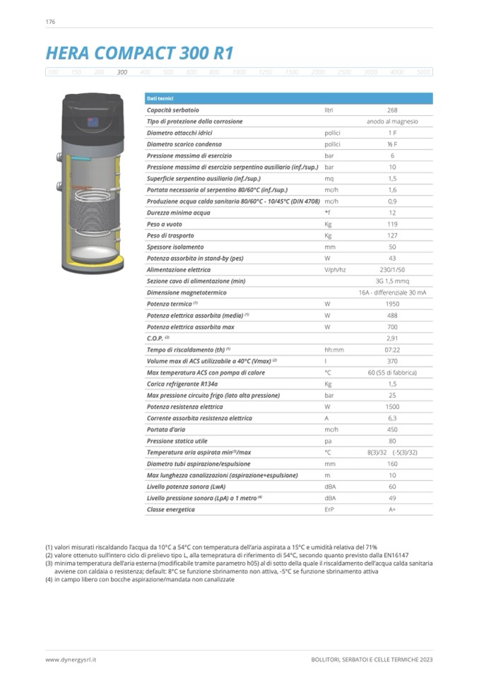 (1) valori misurati riscaldando l’acqua da 10°C a 54°C con temperatura dell’aria aspirata a 15°C e umidità relativa del 71%