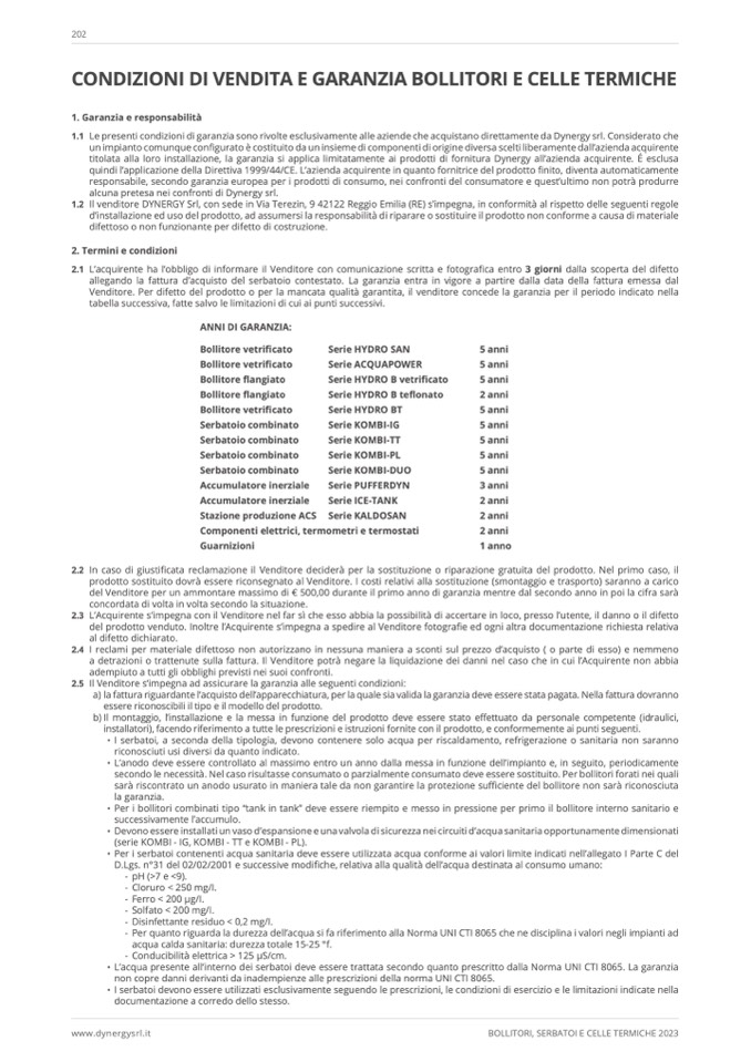 1.1 Le presenti condizioni di garanzia sono rivolte esclusivamente alle aziende che acquistano direttamente da Dynergy srl. Considerato che