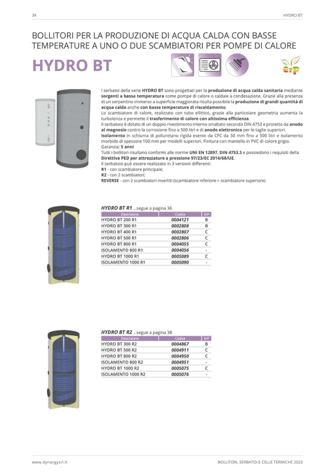 I serbatoi della serie HYDRO BT sono progettati per la produzione di acqua calda sanitaria mediante