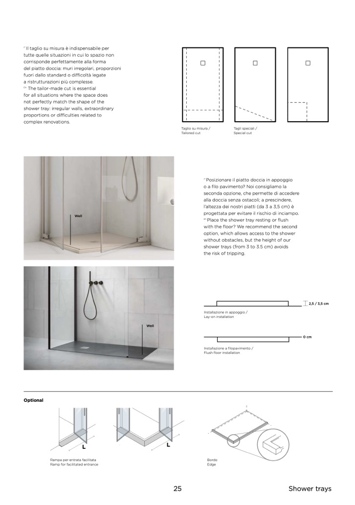 shower trays (from 3 to 3.5 cm) avoids