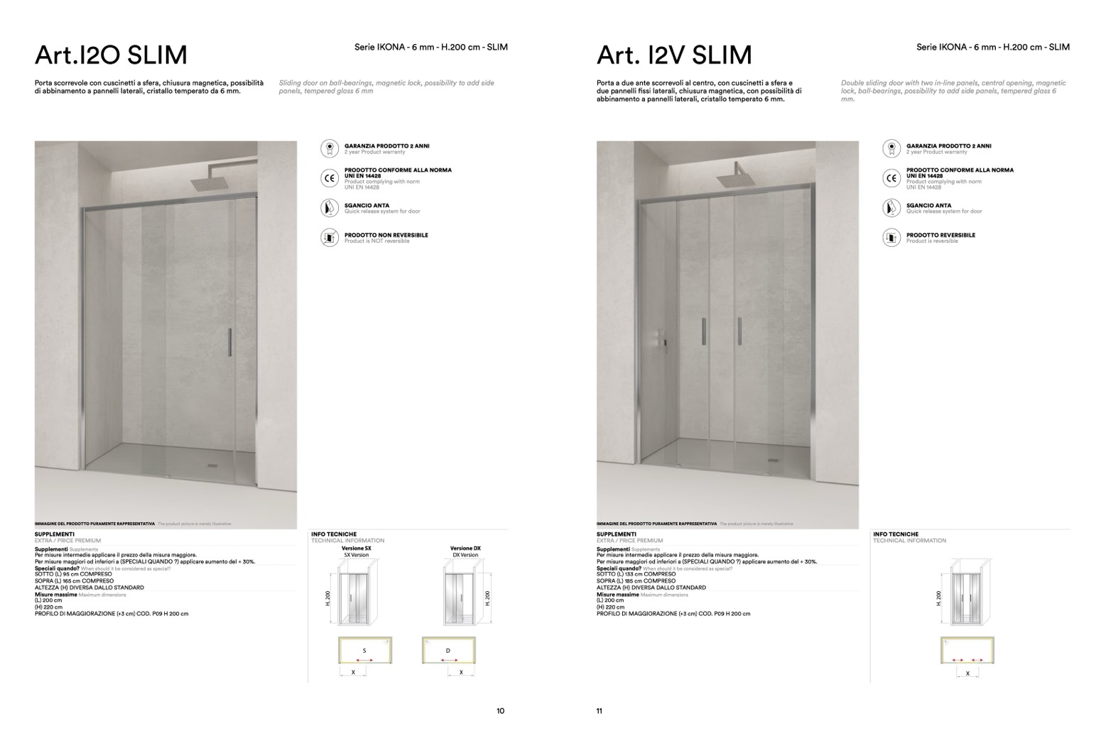 abbinamento a pannelli laterali, cristallo temperato 6 mm.