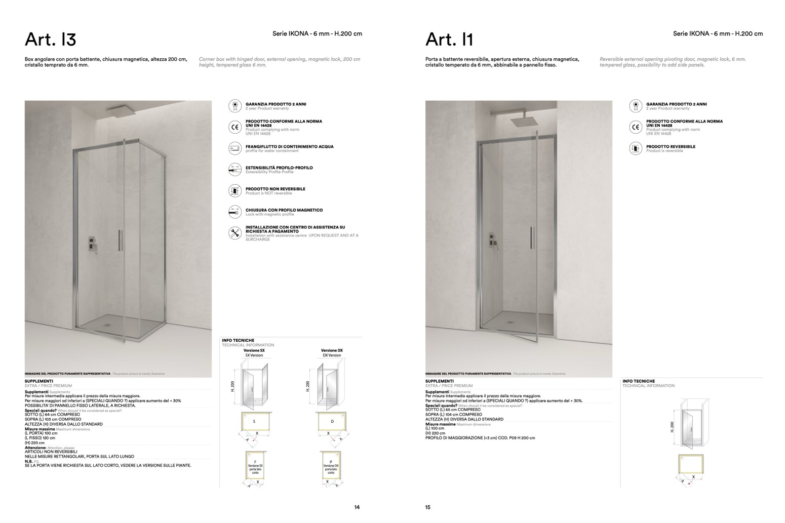 Per misure intermedie applicare il prezzo della misura maggiore.