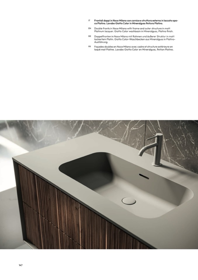 co Platino. Lavabo Giotto Color in Mineralguss finitura Platino.