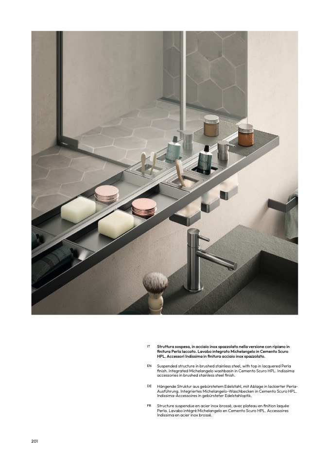 HPL. Accessori Indissima in finitura acciaio inox spazzolato.
