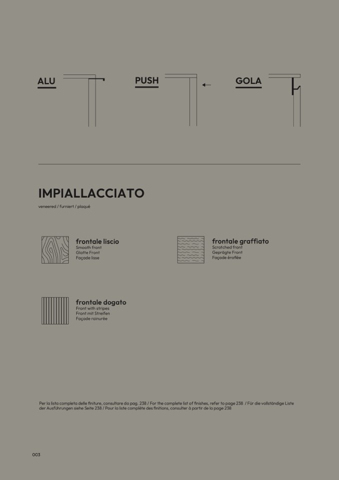 Per la lista completa delle finiture, consultare da pag. 238 / For the complete list of finishes, refer to page 238