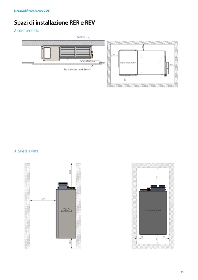 In figura è rappresentata l’unità RER 100, le distanze indicate sono le minime utili.