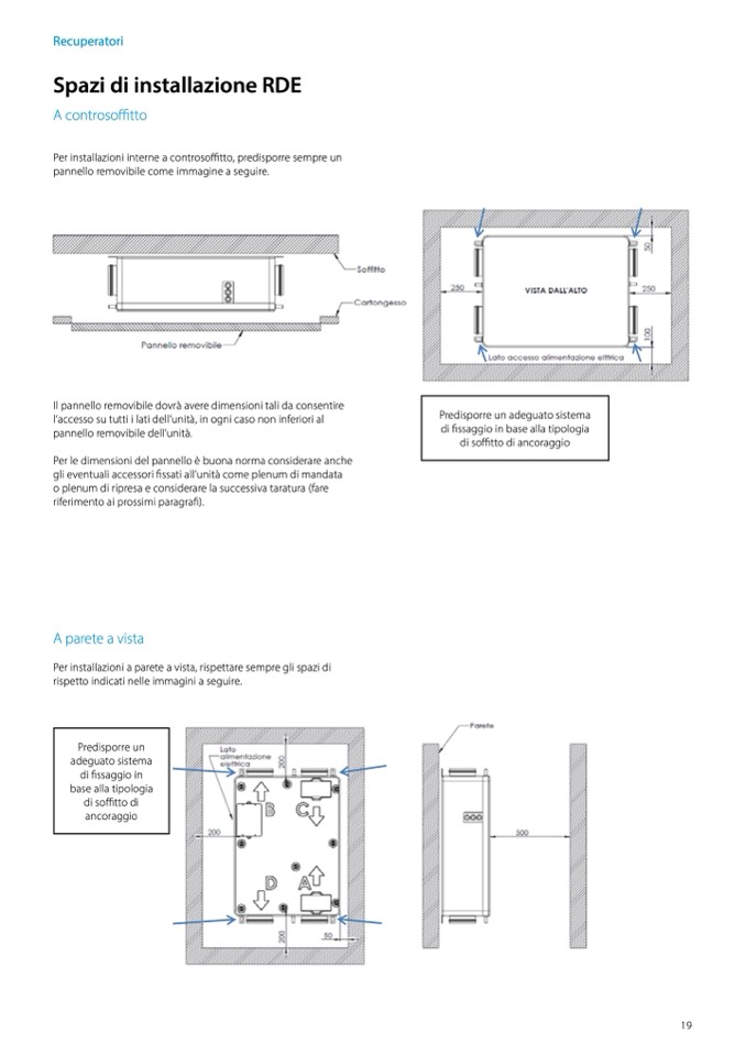 Per installazioni interne a controsoffitto, predisporre sempre un