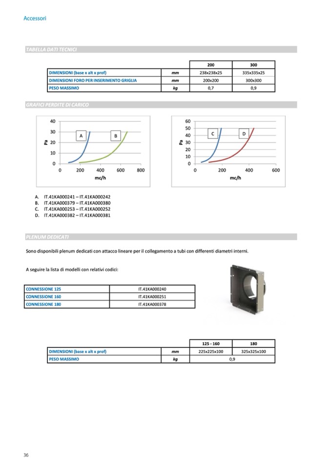 Sono disponibili plenum dedicati con attacco lineare per il collegamento a tubi con differenti diametri interni.