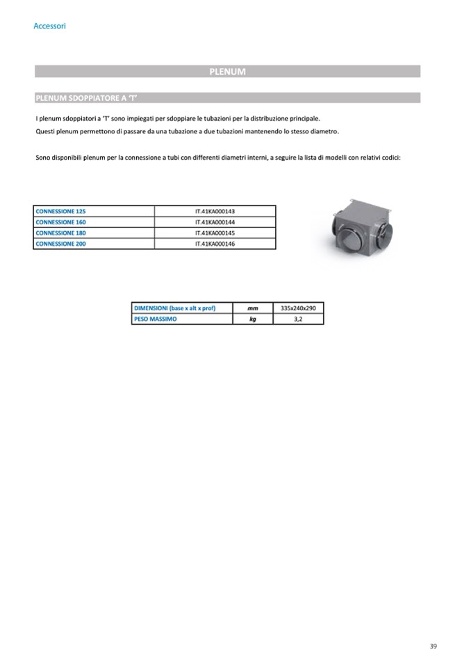 PLENUM SDOPPIATORE A ‘T’