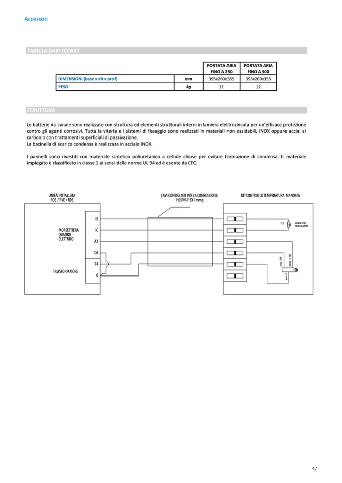 Le batterie da canale sono realizzate con struttura ed elementi strutturali interni in lamiera elettrozincata per un’efficace protezione