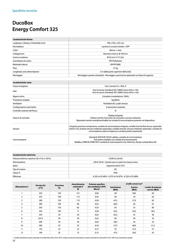 * Livello di potenza sonora misurato in conformità a ISO 3741: 2010. Livello sonoro di immissione e scarico secondo la norma ISO 5135: 1997 (con correzione canale)