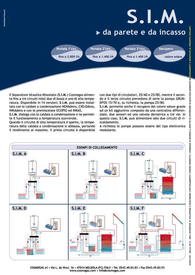 Il Separatore Idraulico Miscelato (S.I.M.) Cosmogas alimen-