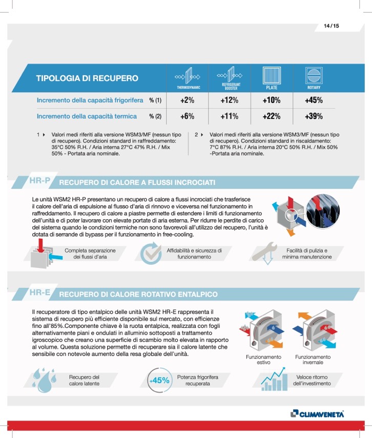 Il recuperatore di tipo entalpico delle unità WSM2 HR-E rappresenta il