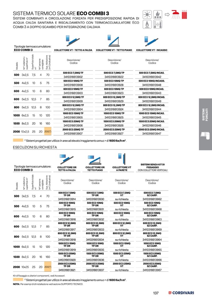 Sistemi progettati per utilizzo in aree ad elevato irraggiamento annuo > di 1600 Kw/h m