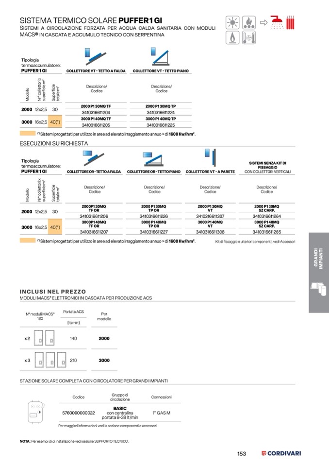 Sistemi progettati per utilizzo in aree ad elevato irraggiamento annuo > di 1600 Kw/h m