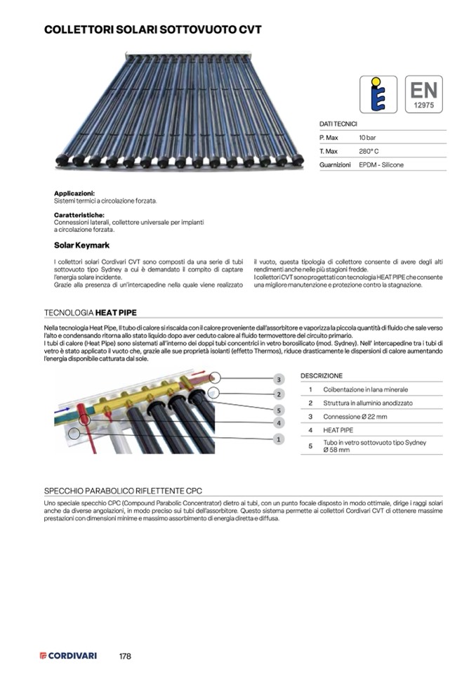 anche da diverse angolazioni, in modo preciso sui tubi dell’assorbitore. Questo sistema permette ai collettori Cordivari CVT di ottenere massime