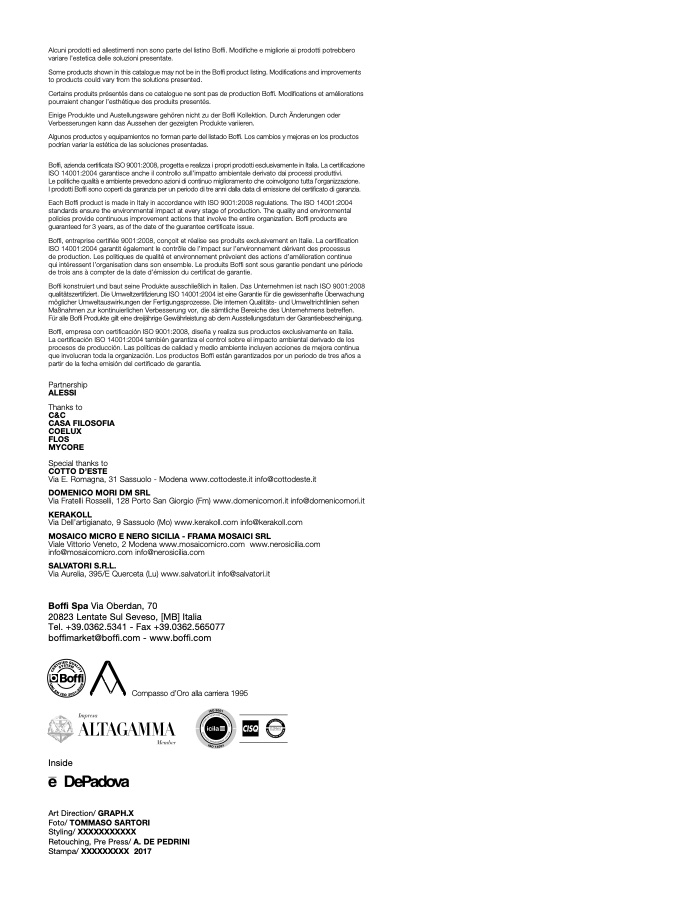 Alcuni prodotti ed allestimenti non sono parte del listino Boffi. Modifiche e migliorie ai prodotti potrebbero