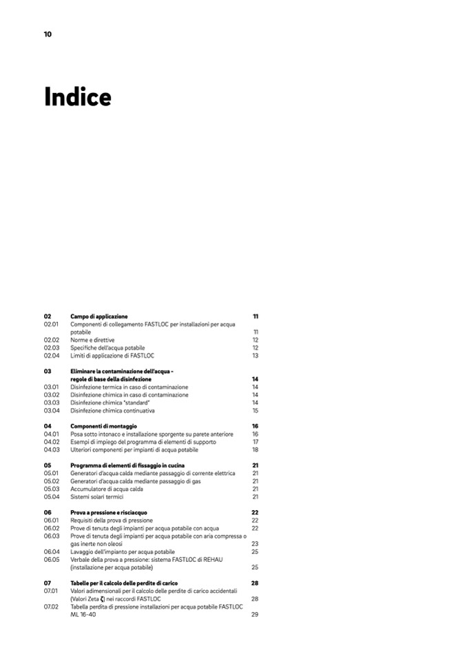Tabella perdita di pressione installazioni per acqua potabile FASTLOC