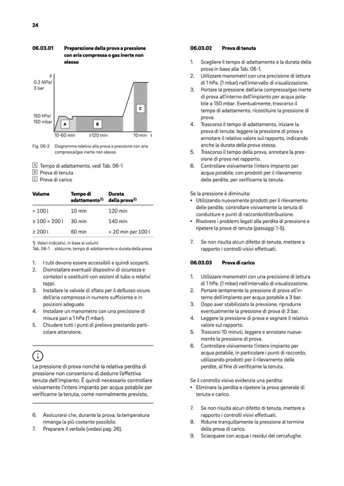 Tab. 06-1 aVolume, tempo di adattamento e durata della prova