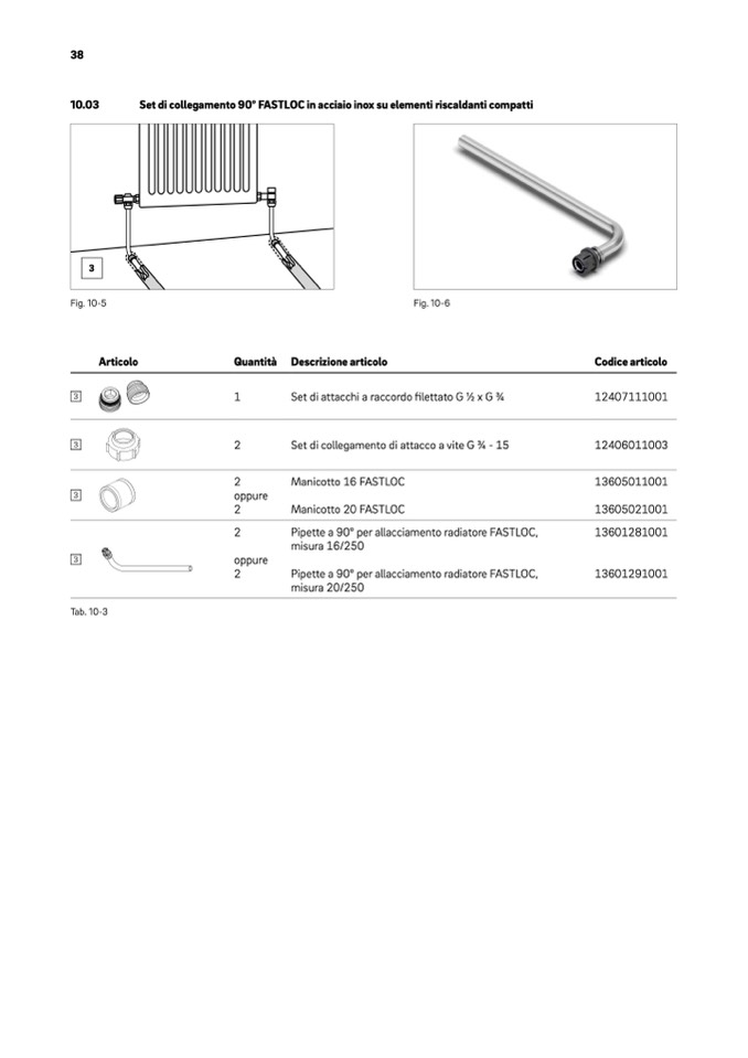 Pipette a 90° per allacciamento radiatore FASTLOC,