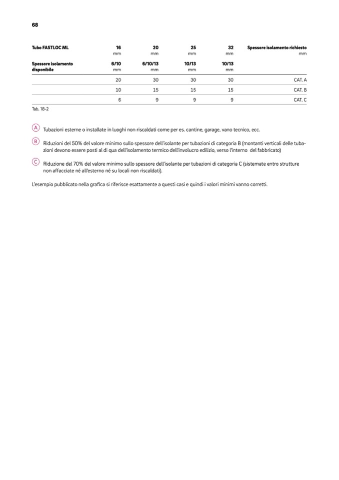Riduzioni del 50% del valore minimo sullo spessore dell’isolante per tubazioni di categoria B (montanti verticali delle tuba-