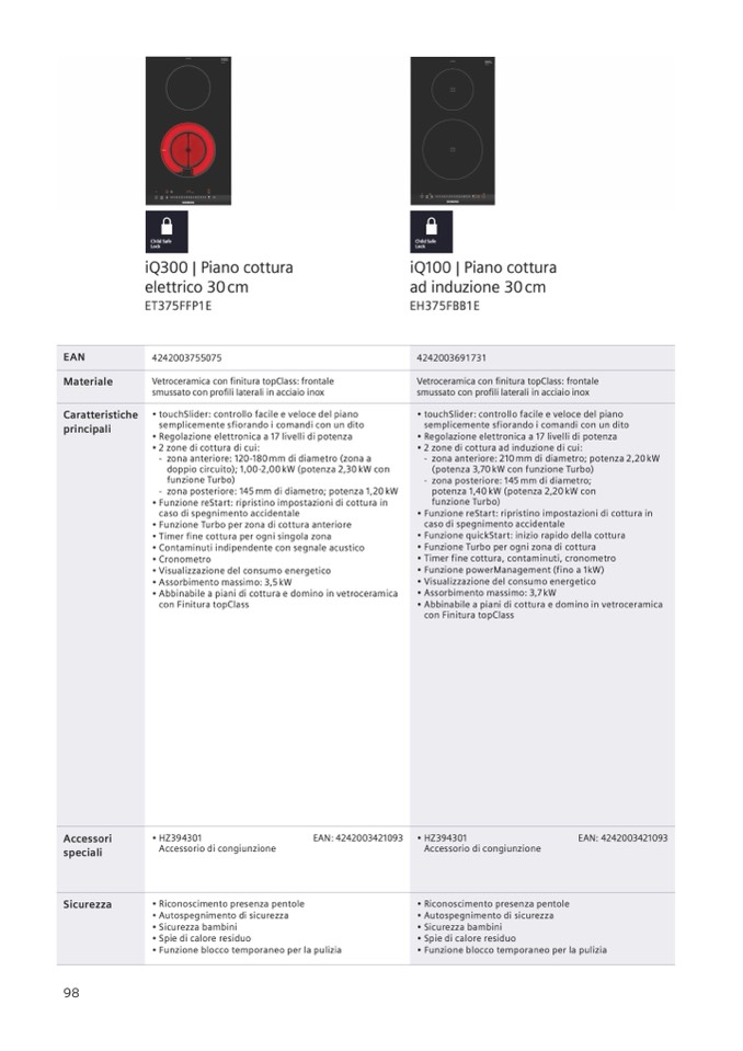 • Abbinabile a piani di cottura e domino in vetroceramica