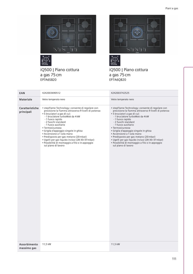 • Predisposto per gas metano (20 mbar)