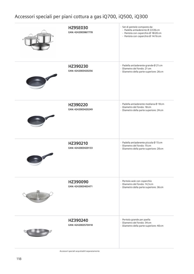 Accessori speciali acquistabili separatamente