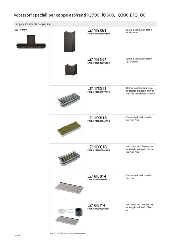 Accessori speciali acquistabili separatamente