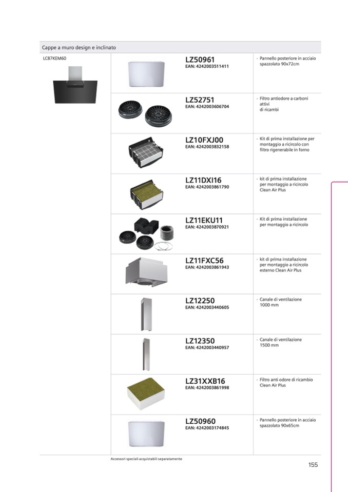 Accessori speciali acquistabili separatamente