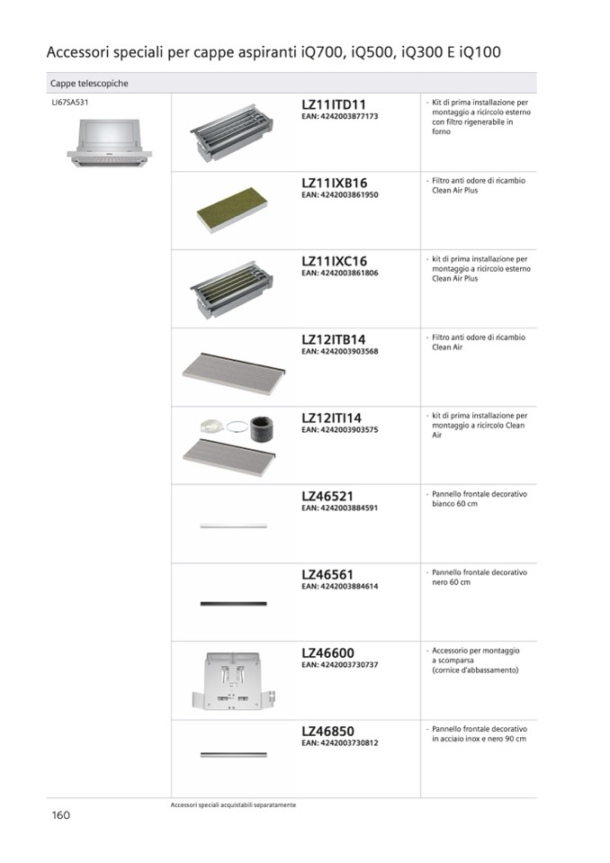 Accessori speciali acquistabili separatamente