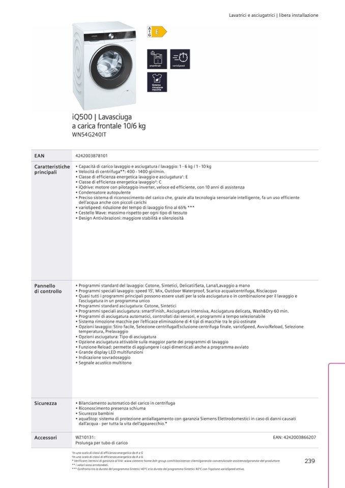 * Verificare i termini di garanzia al link: www.siemens-home.bsh-group.com/it/assistenza-clienti/garanzia-convenzionale-assistenza/garanzia-del-produttore