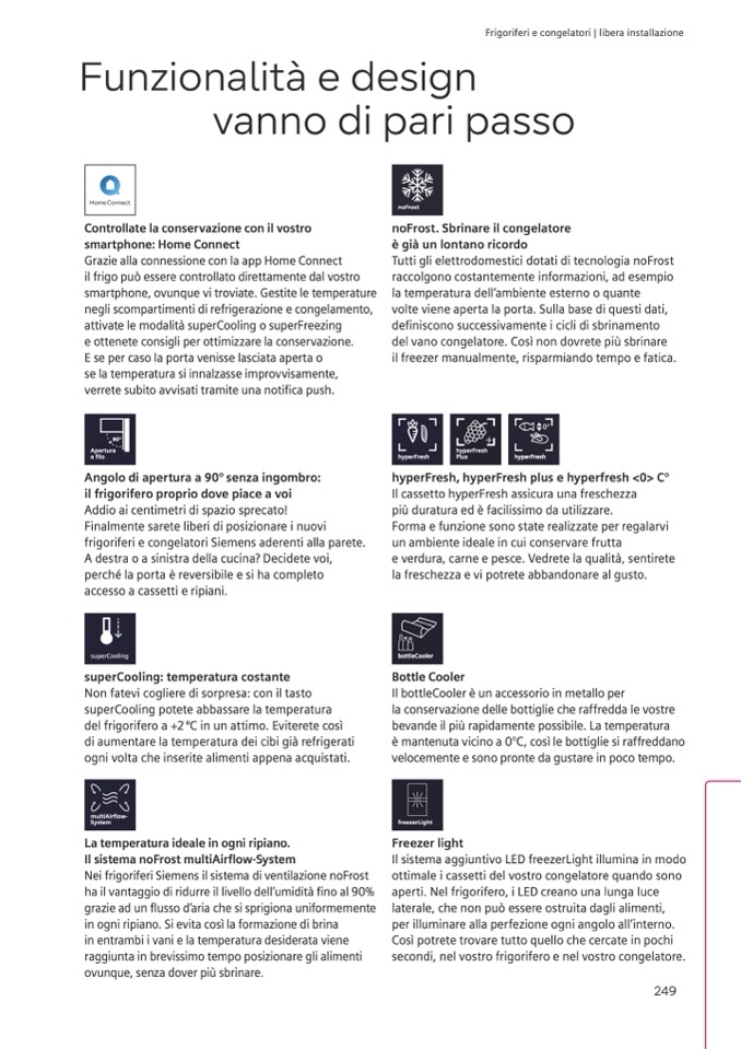 frigoriferi e congelatori Siemens aderenti alla parete.