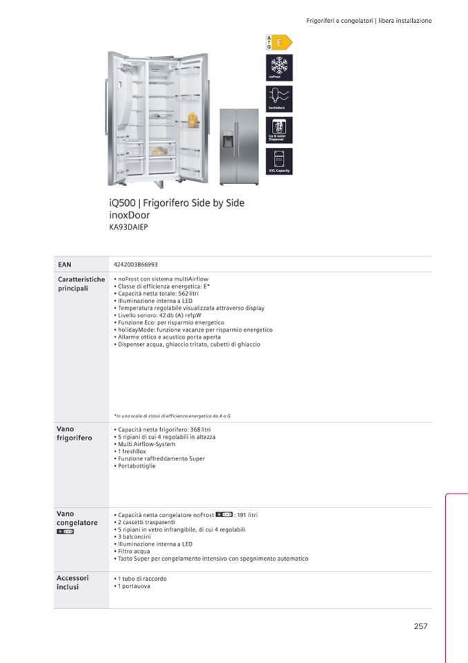 • Dispenser acqua, ghiaccio tritato, cubetti di ghiaccio
