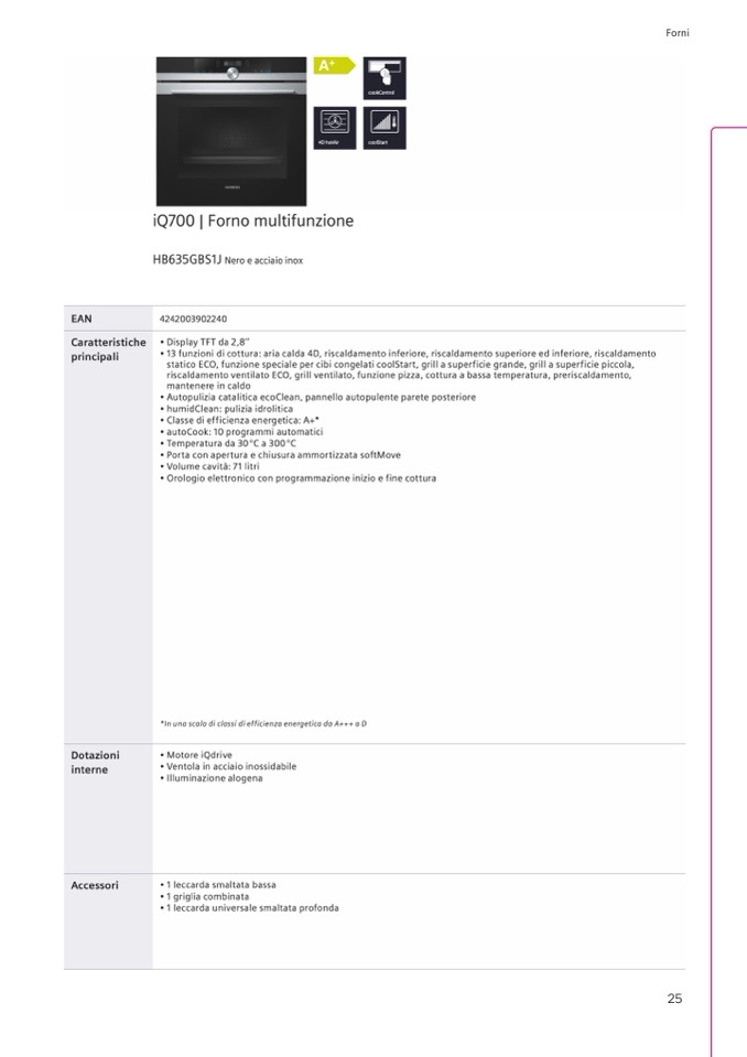 • 13 funzioni di cottura: aria calda 4D, riscaldamento inferiore, riscaldamento superiore ed inferiore, riscaldamento