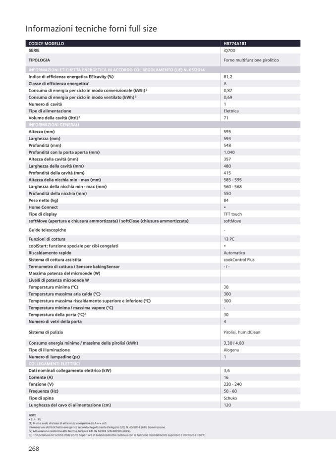 (2) Misurazione conforme alla Norma Europea CEI EN 50304 / EN 60350 (2009).