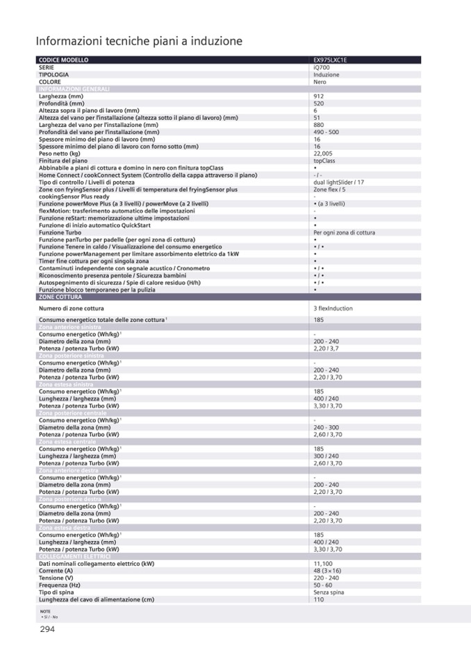 Per ogni zona di cottura