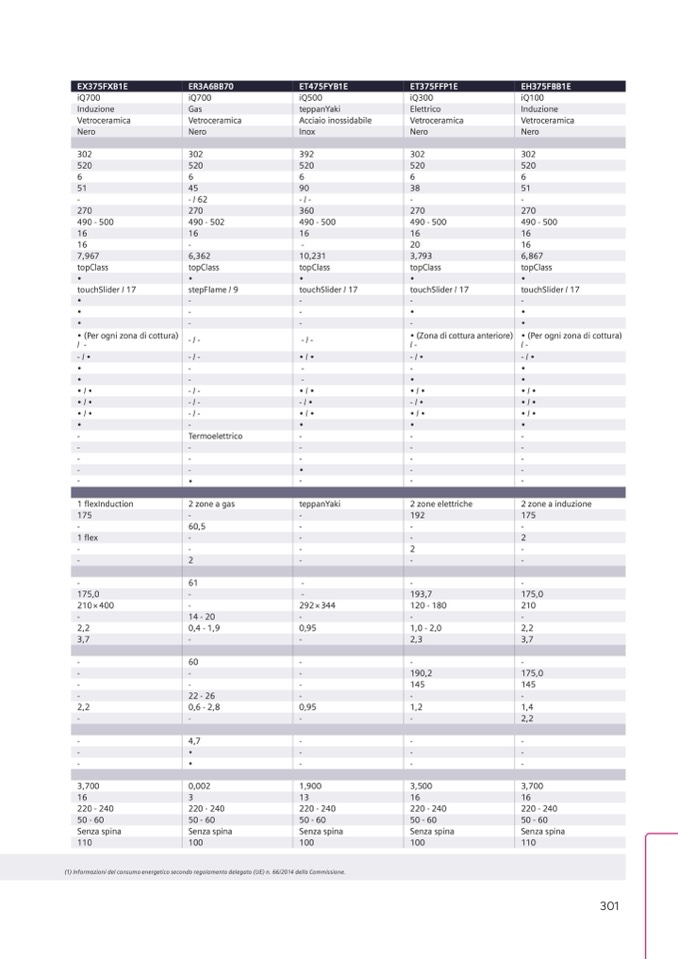 (1) Informazioni del consumo energetico secondo regolamento delegato (UE) n. 66/2014 della Commissione.