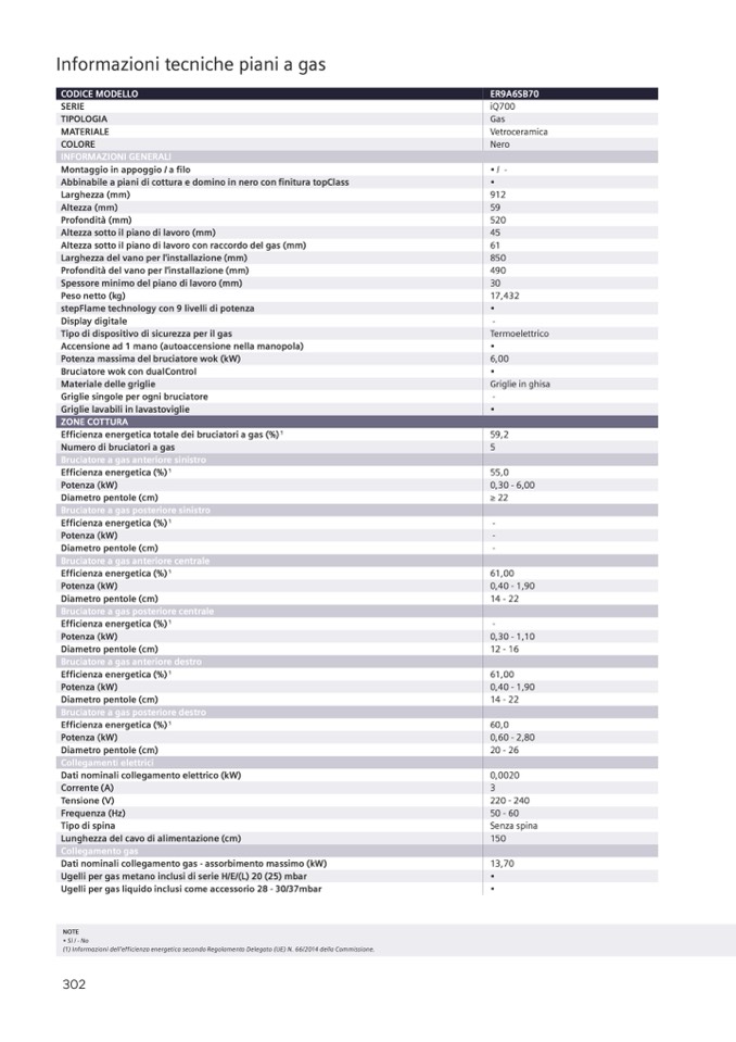 (1) Informazioni dell’efficienza energetica secondo Regolamento Delegato (UE) N. 66/2014 della Commissione.