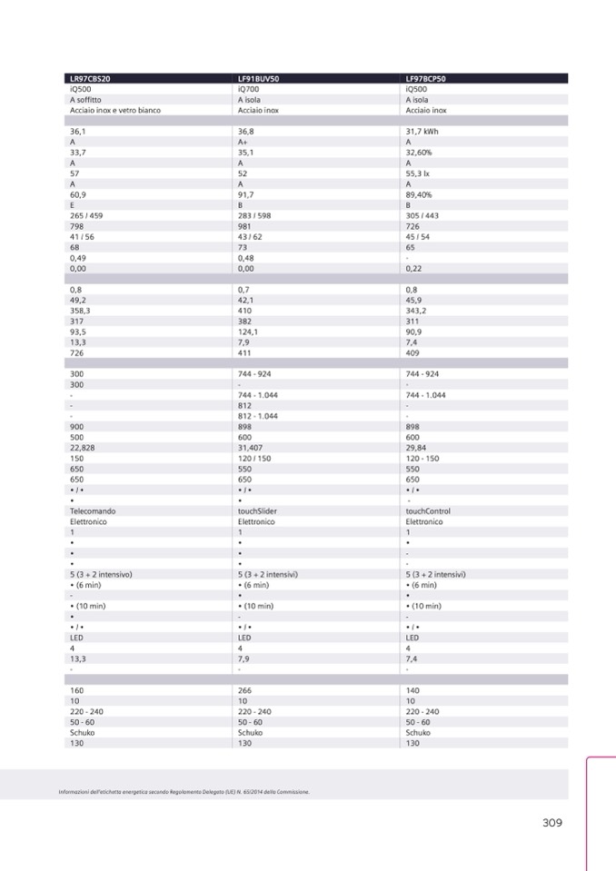 Informazioni dell’etichetta energetica secondo Regolamento Delegato (UE) N. 65/2014 della Commissione.